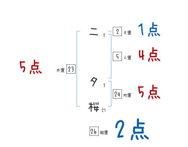 二夕桜さんの画数の鑑定結果