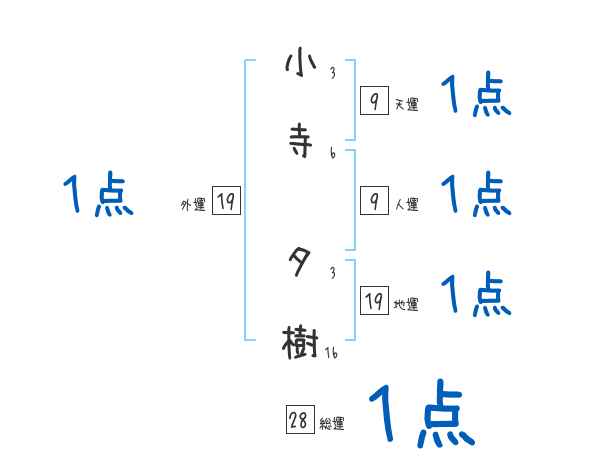 総運![]() | 小寺夕樹さんの総運は28画の1つ星!家庭環境に注意。スポーツで活躍できる能力があるかも。 あなたの人生を表す1番重要な運勢です。生涯を通じて影響する総合運となり、主に50歳以降の晩年期に影響を及ぼします。 |