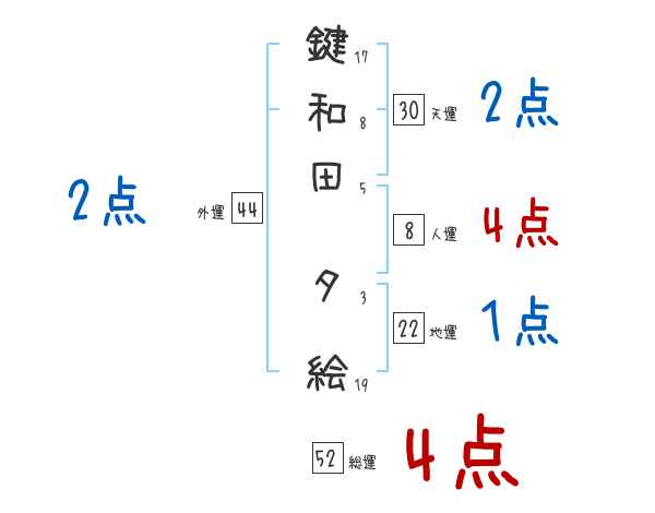 鍵和田夕絵さんの画数の鑑定結果