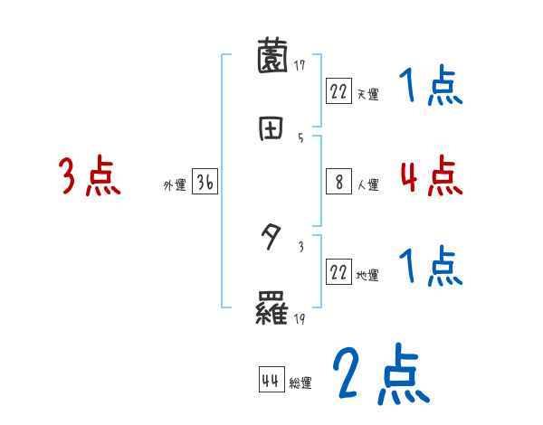 外運![]() | 薗田夕羅さんの外運は36画の3つ星!先見性が豊かです。多少神経質で苦労することも。 生活面を象徴する運勢です。外部から受ける影響力を表し、結婚運、家庭運や職場、環境への順応性を表します。 |