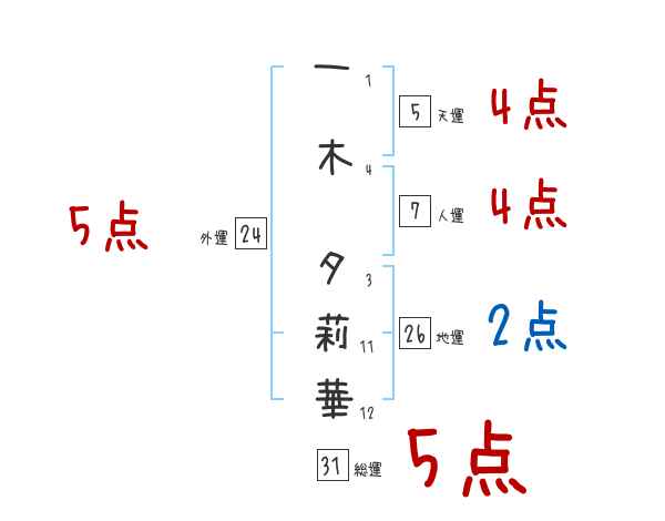 一木夕莉華さんの画数の鑑定結果