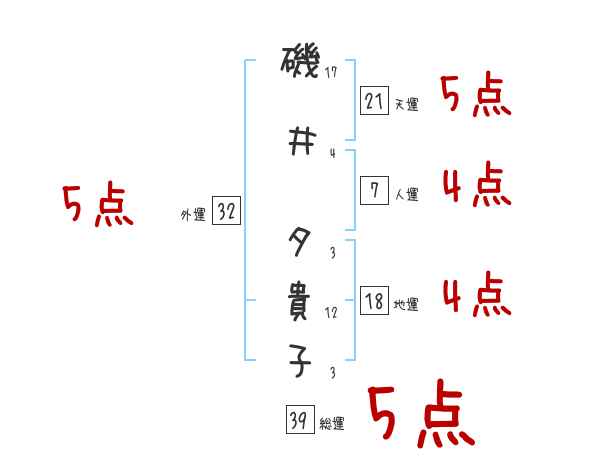 磯井夕貴子さんの画数の鑑定結果