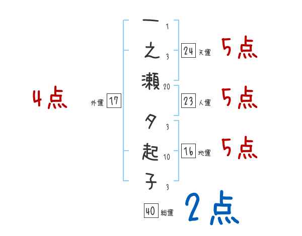 外運![]() | 一之瀬夕起子さんの外運は17画の4つ星!積極的な行動力。地位を気づき財産を手に入れる。純粋な心と直感力。 生活面を象徴する運勢です。外部から受ける影響力を表し、結婚運、家庭運や職場、環境への順応性を表します。 |