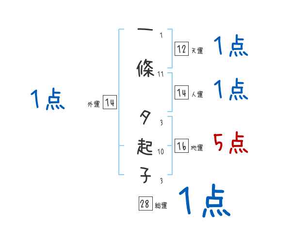 地運![]() | 一條夕起子さんの地運は16画の5つ星!人望が厚く大きく発展する。逆転成功が見える。 個性を表す基礎的な運勢です。性格形成や対人関係、行動力など家庭環境に影響されます。主に誕生してから20歳くらいまでの若年期の運勢を表します。 |