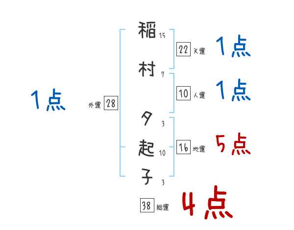 稲村夕起子さんの画数の鑑定結果