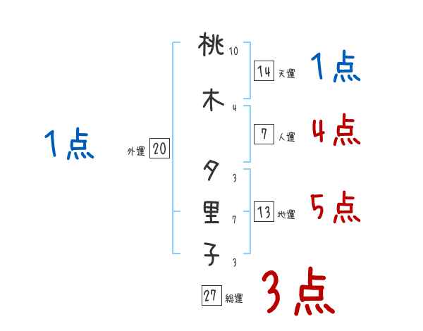 総運![]() | 桃木夕里子さんの総運は27画の3つ星!頭脳明晰だが強情で摩擦が多い傾向。孤立に注意。 あなたの人生を表す1番重要な運勢です。生涯を通じて影響する総合運となり、主に50歳以降の晩年期に影響を及ぼします。 |