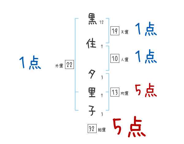 総運![]() | 黒住夕里子さんの総運は32画の5つ星!柔軟性があり成功する。チャンスが多く金運が良い。 あなたの人生を表す1番重要な運勢です。生涯を通じて影響する総合運となり、主に50歳以降の晩年期に影響を及ぼします。 |