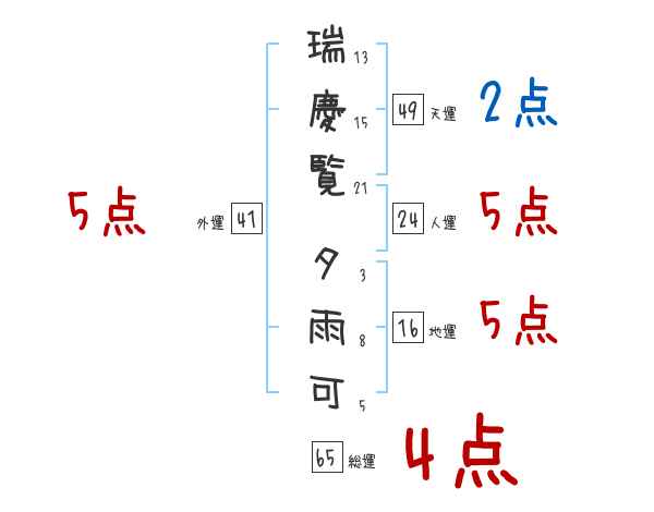 瑞慶覧夕雨可さんの画数の鑑定結果