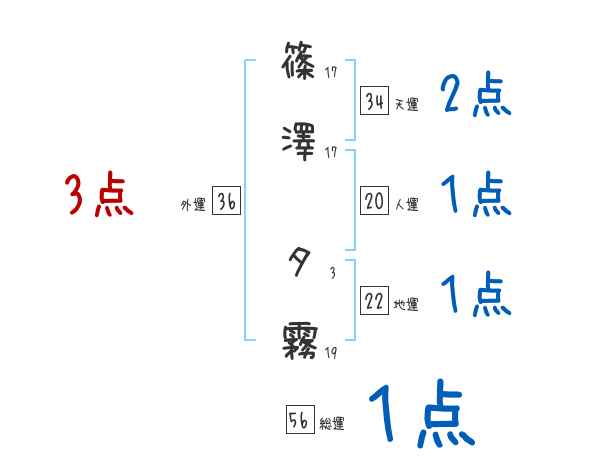 天運![]() | 篠澤夕霧さんの天運は34画の2つ星!独創性に優れるが、自尊心が強く災難に注意しましょう。 家系が持つ宿命的な運勢を表します。祖先から受け継いだ苗字ですので自分の力が及びません。家柄を象徴します。 |