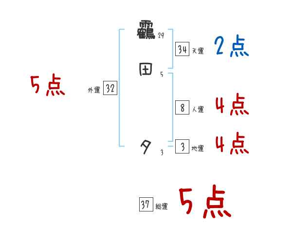 外運![]() | 靏田夕さんの外運は32画の5つ星!柔軟性があり成功する。チャンスが多く金運が良い。 生活面を象徴する運勢です。外部から受ける影響力を表し、結婚運、家庭運や職場、環境への順応性を表します。 |