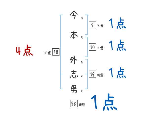 今本外志男さんの画数の鑑定結果