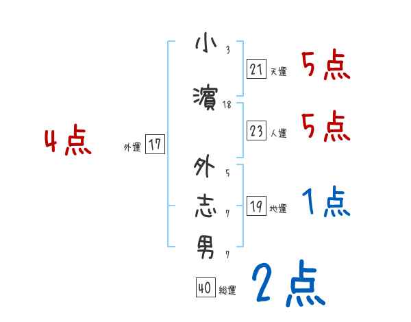 小濵外志男さんの画数の鑑定結果