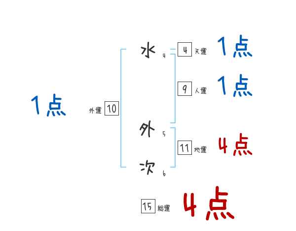 家系が持つ宿命的な運勢を表します。祖先から受け継いだ苗字ですので自分の力が及びません。家柄を象徴します。