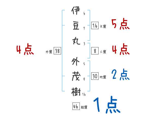 伊豆丸外茂樹さんの画数の鑑定結果