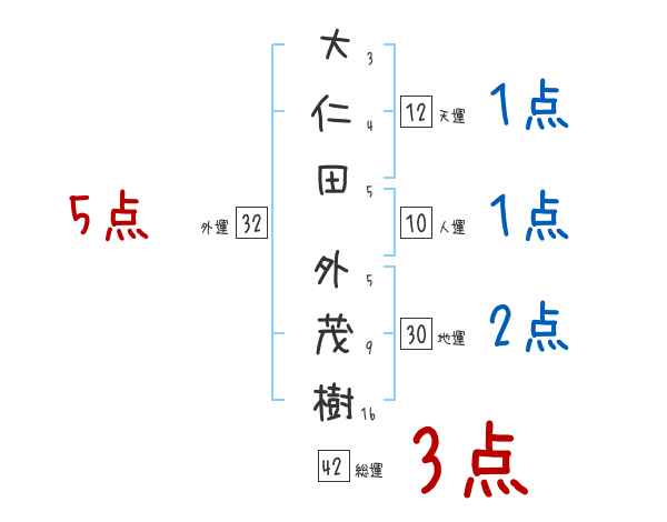 大仁田外茂樹さんの画数の鑑定結果