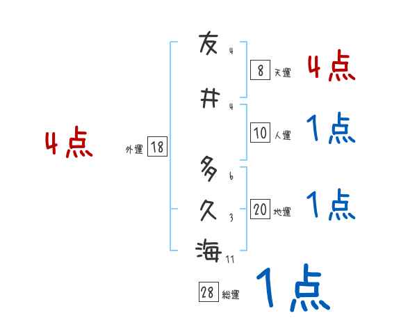 天運![]() | 友井多久海さんの天運は8画の4つ星!勤勉家。根気強く努力し成功する。忍耐力がある。 家系が持つ宿命的な運勢を表します。祖先から受け継いだ苗字ですので自分の力が及びません。家柄を象徴します。 |