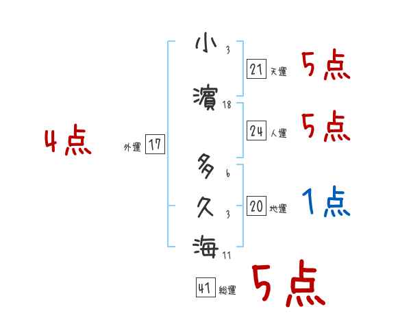 小濵多久海さんの画数の鑑定結果