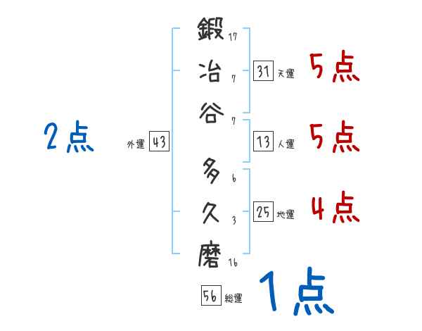 鍛冶谷多久磨さんの総運は56画の1つ星