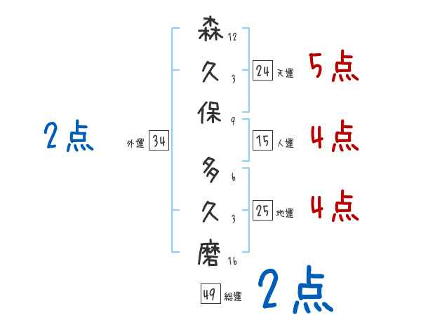 森久保多久磨さんの画数の鑑定結果