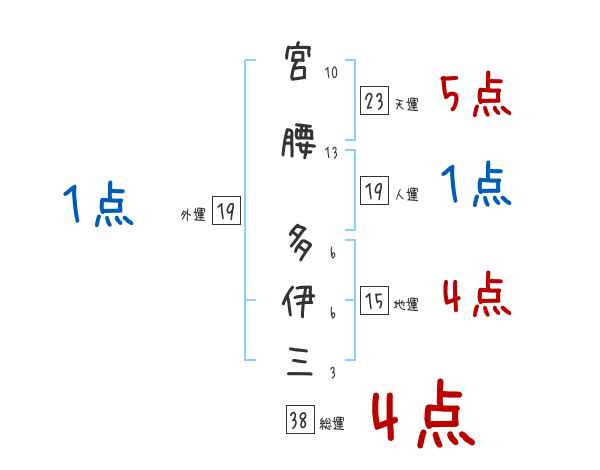 宮腰多伊三さんの画数の鑑定結果