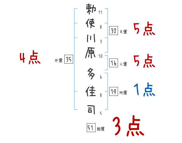 勅使川原多佳司さんの画数の鑑定結果
