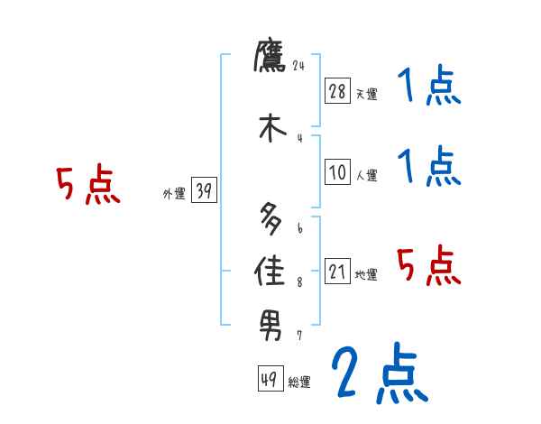 鷹木多佳男さんの画数の鑑定結果