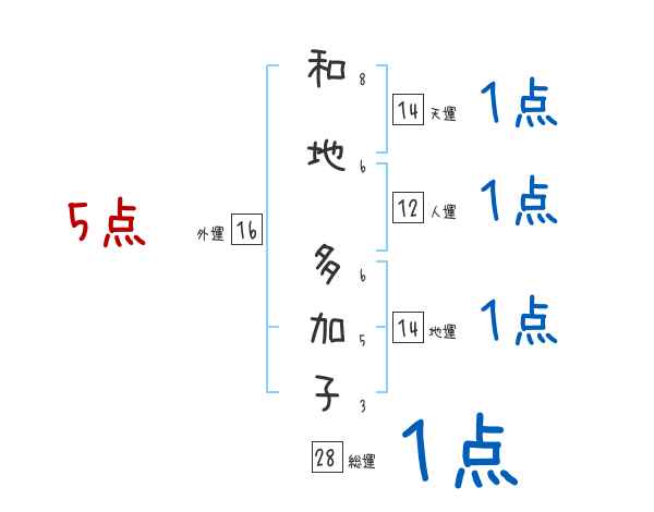 総運![]() | 和地多加子さんの総運は28画の1つ星!家庭環境に注意。スポーツで活躍できる能力があるかも。 あなたの人生を表す1番重要な運勢です。生涯を通じて影響する総合運となり、主に50歳以降の晩年期に影響を及ぼします。 |