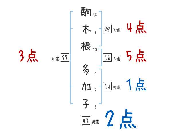駒木根多加子さんの画数の鑑定結果