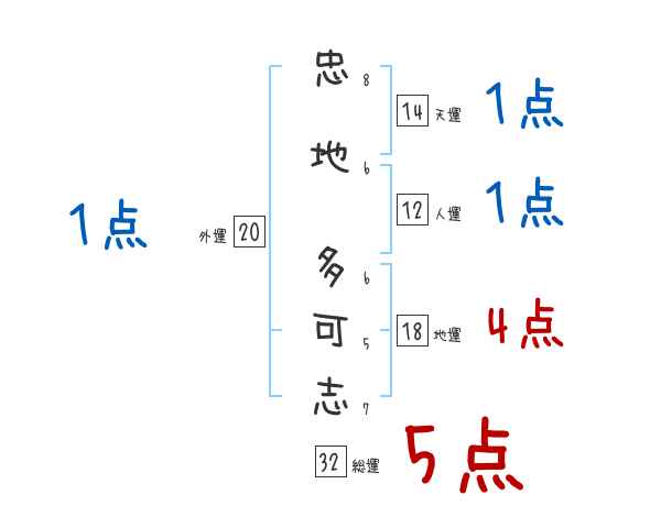 忠地多可志さんの画数の鑑定結果