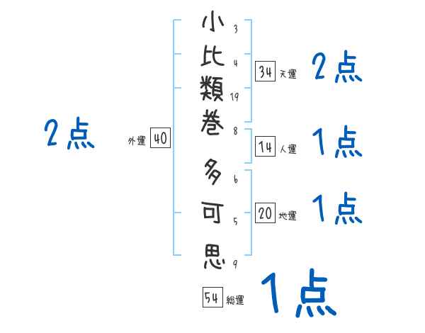 外運![]() | 小比類巻多可思さんの外運は40画の2つ星!自信過剰で物事に固執するためトラブルに注意。 生活面を象徴する運勢です。外部から受ける影響力を表し、結婚運、家庭運や職場、環境への順応性を表します。 |