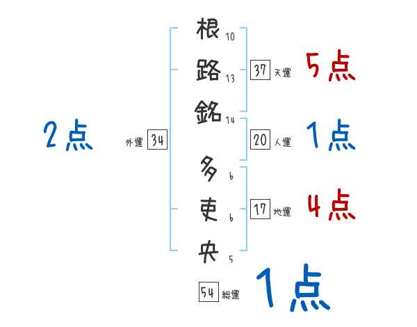 外運![]() | 根路銘多吏央さんの外運は34画の2つ星!独創性に優れるが、自尊心が強く災難に注意しましょう。 生活面を象徴する運勢です。外部から受ける影響力を表し、結婚運、家庭運や職場、環境への順応性を表します。 |