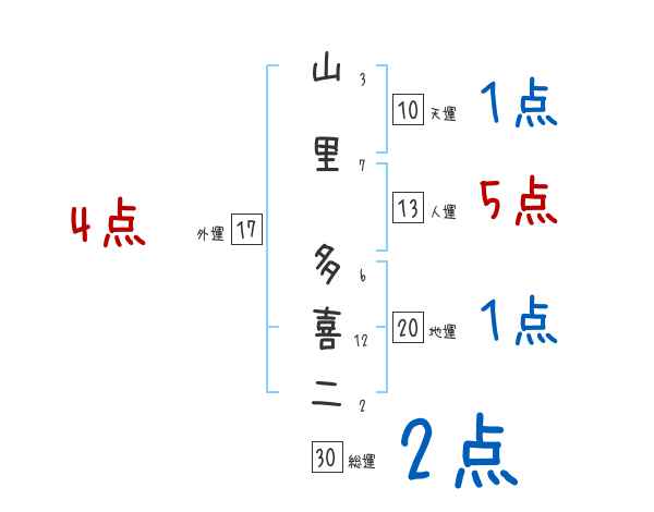 天運![]() | 山里多喜二さんの天運は10画の1つ星!不安を感じやすい傾向。ストレスを抱えないように注意しましょう。 家系が持つ宿命的な運勢を表します。祖先から受け継いだ苗字ですので自分の力が及びません。家柄を象徴します。 |