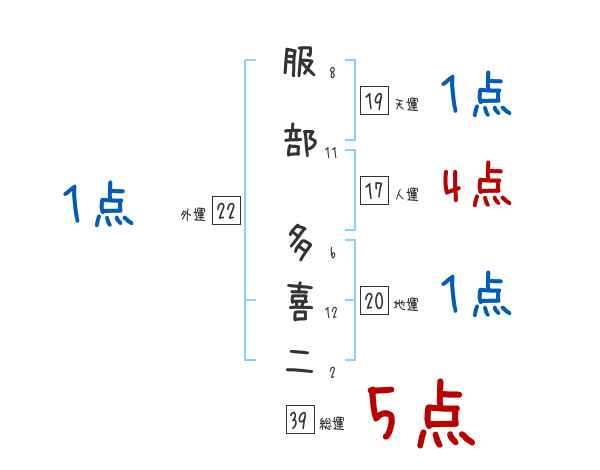 服部多喜二さんの画数の鑑定結果