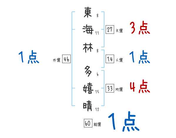 地運![]() | 東海林多嬉晴さんの地運は33画の4つ星!権力志向でプライドが高い。勇気があり運を切り開き成功する。 個性を表す基礎的な運勢です。性格形成や対人関係、行動力など家庭環境に影響されます。主に誕生してから20歳くらいまでの若年期の運勢を表します。 |