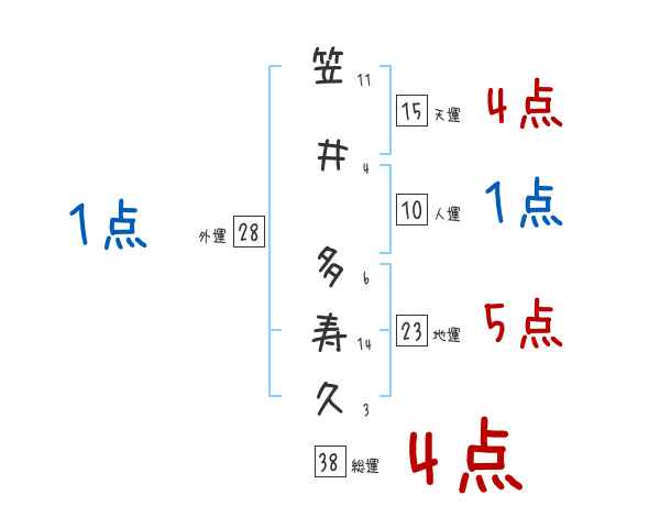 外運![]() | 笠井多寿久さんの外運は28画の1つ星!家庭環境に注意。スポーツで活躍できる能力があるかも。 生活面を象徴する運勢です。外部から受ける影響力を表し、結婚運、家庭運や職場、環境への順応性を表します。 |
