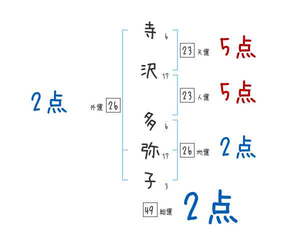 寺沢多弥子さんの画数の鑑定結果