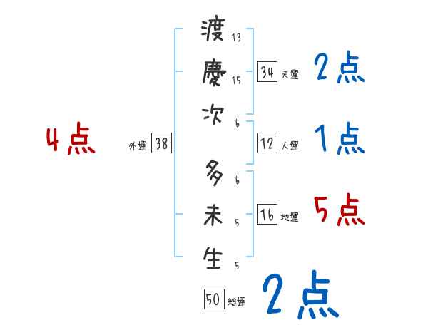 外運![]() | 渡慶次多未生さんの外運は38画の4つ星!温厚な性格で技術的な才能を発揮する。職人的な仕事に向いている。 生活面を象徴する運勢です。外部から受ける影響力を表し、結婚運、家庭運や職場、環境への順応性を表します。 |