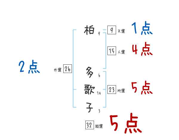 柏多歌子さんの画数の鑑定結果