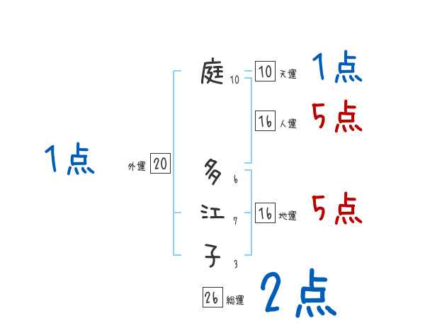 庭多江子さんの画数の鑑定結果