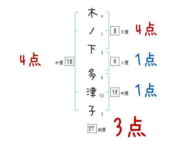 木ノ下多津子さんの画数の鑑定結果