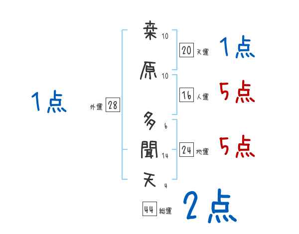 桒原多聞天さんの画数の鑑定結果