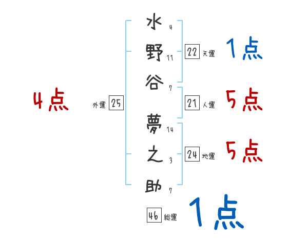 外運![]() | 水野谷夢之助さんの外運は25画の4つ星!個性があり才能があふれる。強運の持ち主で発展する。 生活面を象徴する運勢です。外部から受ける影響力を表し、結婚運、家庭運や職場、環境への順応性を表します。 |