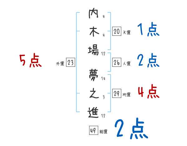 内木場夢之進さんの画数の鑑定結果