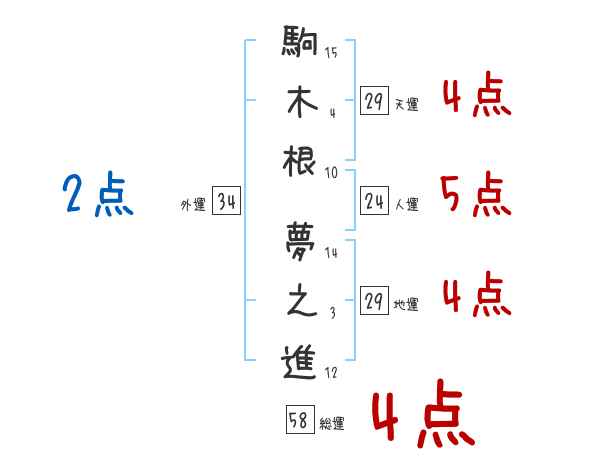 天運![]() | 駒木根夢之進さんの天運は29画の4つ星!完全主義で才能がある。厳格な心の持ち主。 家系が持つ宿命的な運勢を表します。祖先から受け継いだ苗字ですので自分の力が及びません。家柄を象徴します。 |