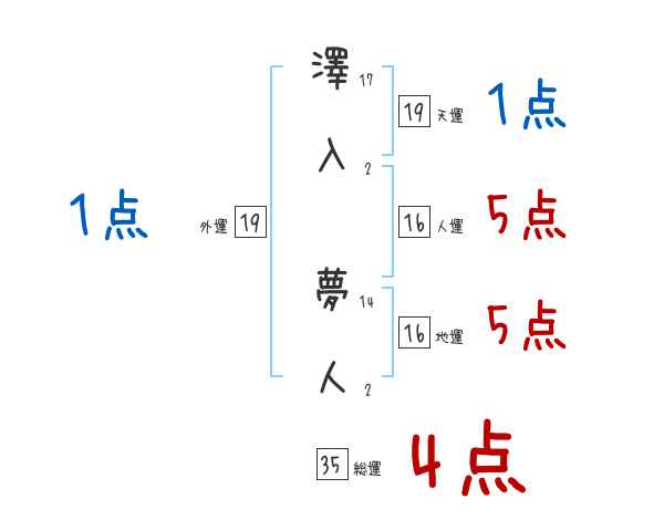 澤入夢人さんの画数の鑑定結果