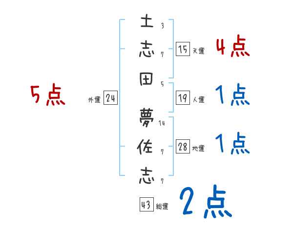土志田夢佐志さんの画数の鑑定結果