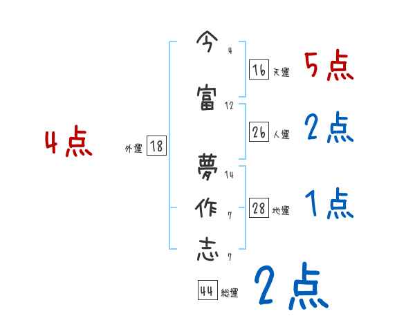 今富夢作志さんの画数の鑑定結果