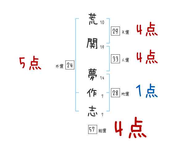 荒関夢作志さんの画数の鑑定結果