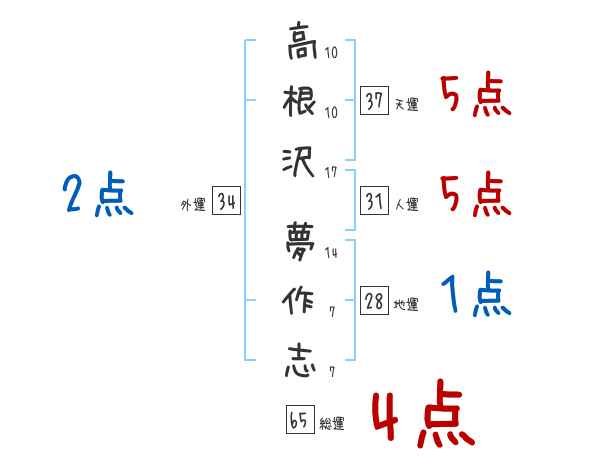 高根沢夢作志さんの画数の鑑定結果