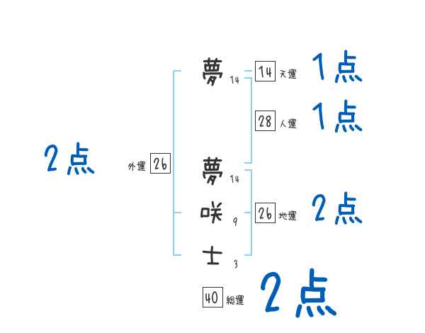 夢夢咲士さんの画数の鑑定結果